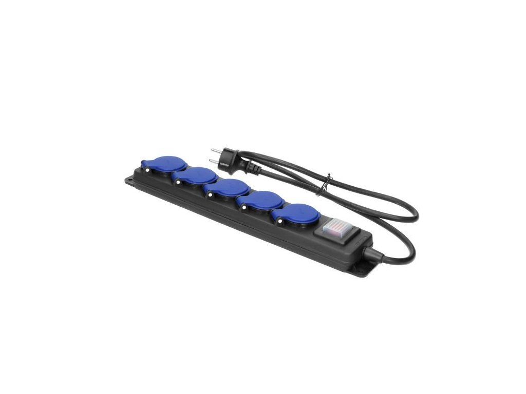 Predlžovacia zásuvka odolná proti striekajúcej vode s vypínačom a káblom o dĺžke 5 m, krytie IP44, je pevné a funkčné zariadenie určené na bezpečné použitie v náročných podmienkach.