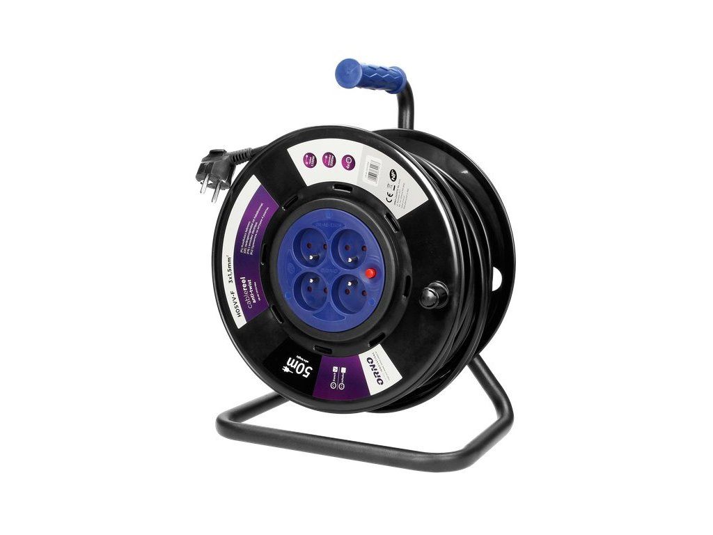 Predlžovací prívod na bubne ORNO OR-AE-13155/50M, 50m, 4x zásuvka, 3x1,5, PVCKáblový navijak s inovatívnym systémom proti pretočeniu (pevné zásuvky) a ochranou proti preťaženiu (tepelný spínač). Poskytuje štyri uzemnené zásuvky s prúdovou ochranou. Navyše má gumovú rukoväť, otočnú rukoväť na navíjanie bubna a zámok otáčania navijaka. Navrhnuté pre náročné podmienky, napríklad dielne alebo staveniská.