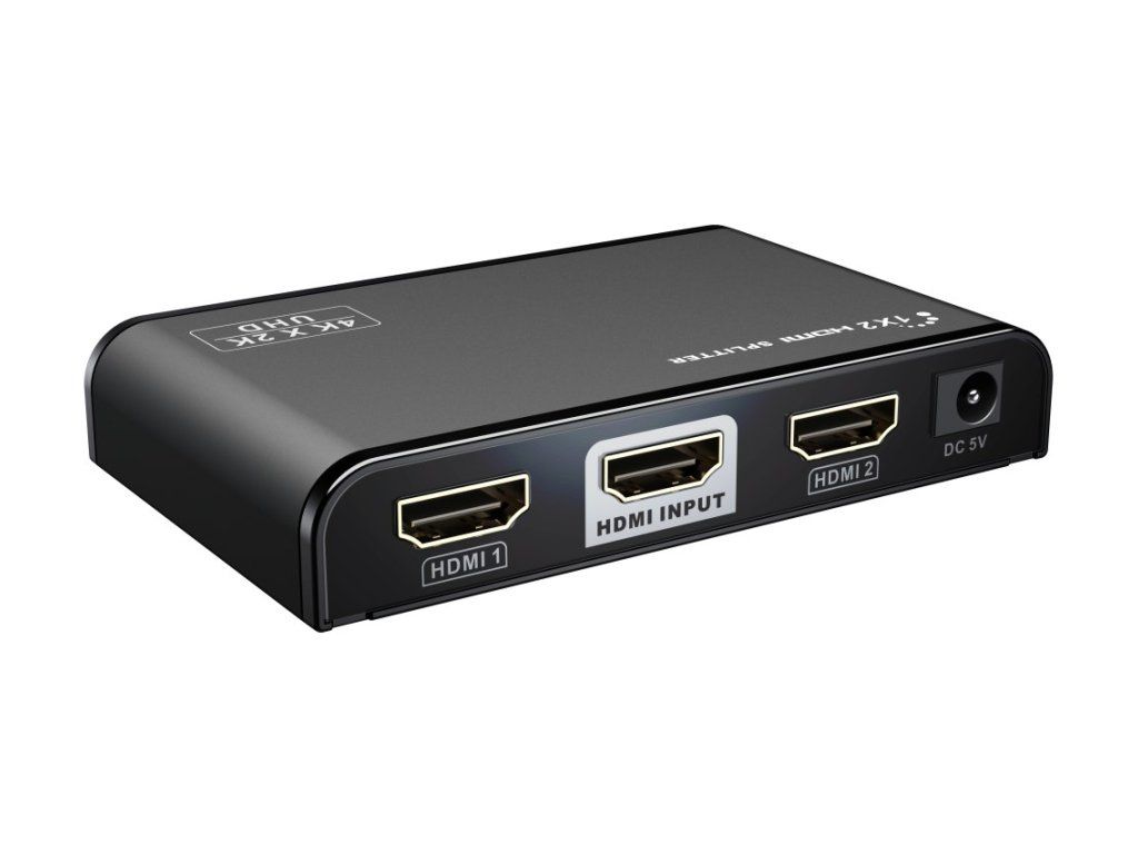 Můžete připojit několik HDMI obrazovek k jednomu HDMI zdroji signálu jako je PC, notebook, DVD, set top box, atd. Základní informace: - Vstup: 1 x HDMI socket (Type A) - Výstup: 2 x HDMI socket (Type A) - Napájení pomocí 230V/1A adaptéru - Na čelním panelu 1xLED indikace napájení, 2xLED indikace signálů na portech - Podporuje 3D a HDTV až do Ultra HD 3840X2160/60HZ - Rozlišení: 480i, 480p, 720i, 720p, 1080i ,1080p, 4K x 2K/60Hz - Podporuje standard HDMI 2.0 , HDMI1.4 - Podporuje HDCP2.2 - Splitter obsahuje aktivní zesilovač signálu, který umožňuje zapojit za splitter kabely až do délky 8m. Kabely musí mít kvalitní měděné vodiče a dostatečný průřez vodičů vzhledem k délce kabelu a použitému rozlišení video signálu - Šířka pásma (MHz): 25MHz - 600 MHz - Max. datový přenos 6 Gb/s - Max. rozlišení: 4K*2K/60Hz (3840X2160/60Hz) - Podporuje standardy: Dolby Digital/Plus, Dolby TrueHD, DTS-HD Master Audio+, DVD-Audio, SA-CD other supported standards: 3D, HDCP 2.2 , CEC - Podporuje 8/10/12 bitovou hloubku barev - Přenáší obraz i zvuk - Pěkné malé kovové pouzdro černé barvy - Rozměry:96mm x 59mm x 17mm - Váha: 98g Návod k zapojení: 1) Vstup HDMI splitteru zapojte HDMI kabelem do zdroje signálu a výstup zapojte do zobrazovací jednotky nebo monitoru. 2) Zapojte napájecí adapter do zásuvky 230V a do zdířky DC 5V. Pokud se obraz po zapojení rozbočovače nezobrazí ihned po zapojení, vyčkejte cca 30s než dojde k rozpoznání HDMI signálu.Dodatočné parametre