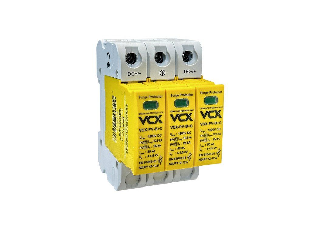 Přepěťová ochrana VCX DC PV-B+C třída T1+T2 (B+C) 3P 1200V 12.5kA Professional GOLD