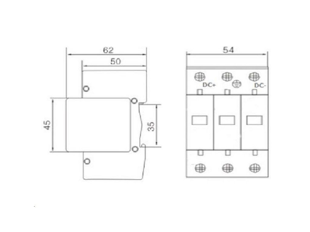 Kompaktní a efektivní konstrukce Díky své kompaktní konstrukci s šířkou pouhých 54 mm (3 póly) lze tuto ochranu snadno integrovat do jakéhokoliv rozvaděče. Speciálně navržené varistory s vysokou průtočností zajišťují maximální spolehlivost a dlouhou životnost.