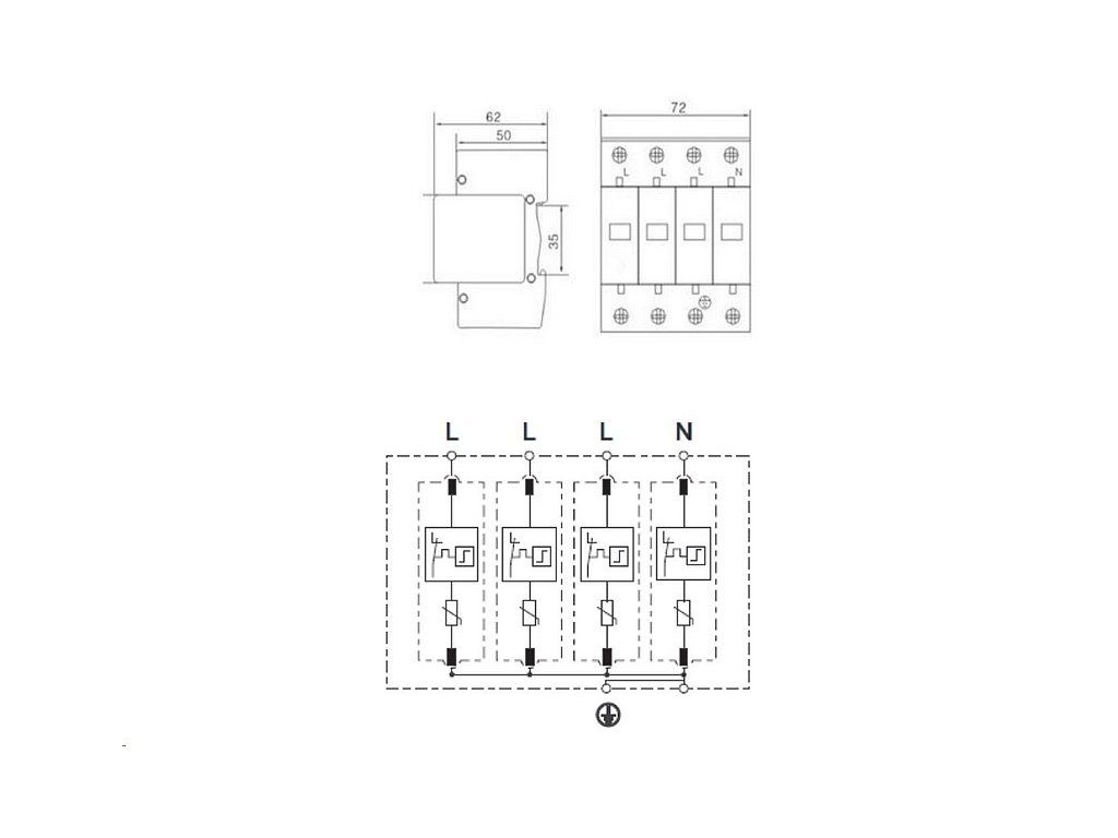 • Snižuje přepětí a svádí na zem přepětí pocházející z obou typů přepětí - přímého i nepřímého. Současně poskytuje dvoustupňovou úroveň ochrany.