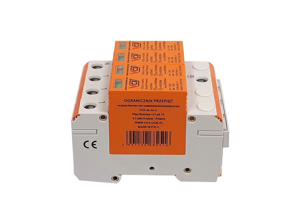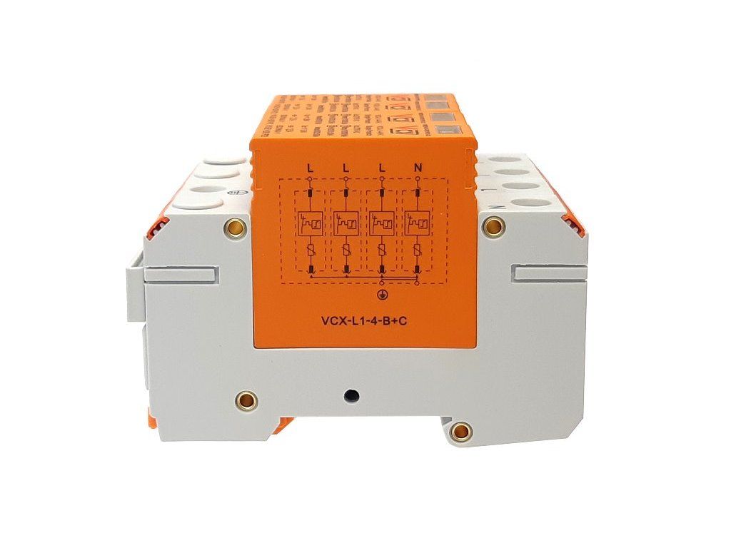Modulární přepěťová ochrana VCX L1-4-B+C 6 kA třídy T1+T2 je určená k ochraně napájecích instalací NN proti indukovaným a spínacím přepětím.
