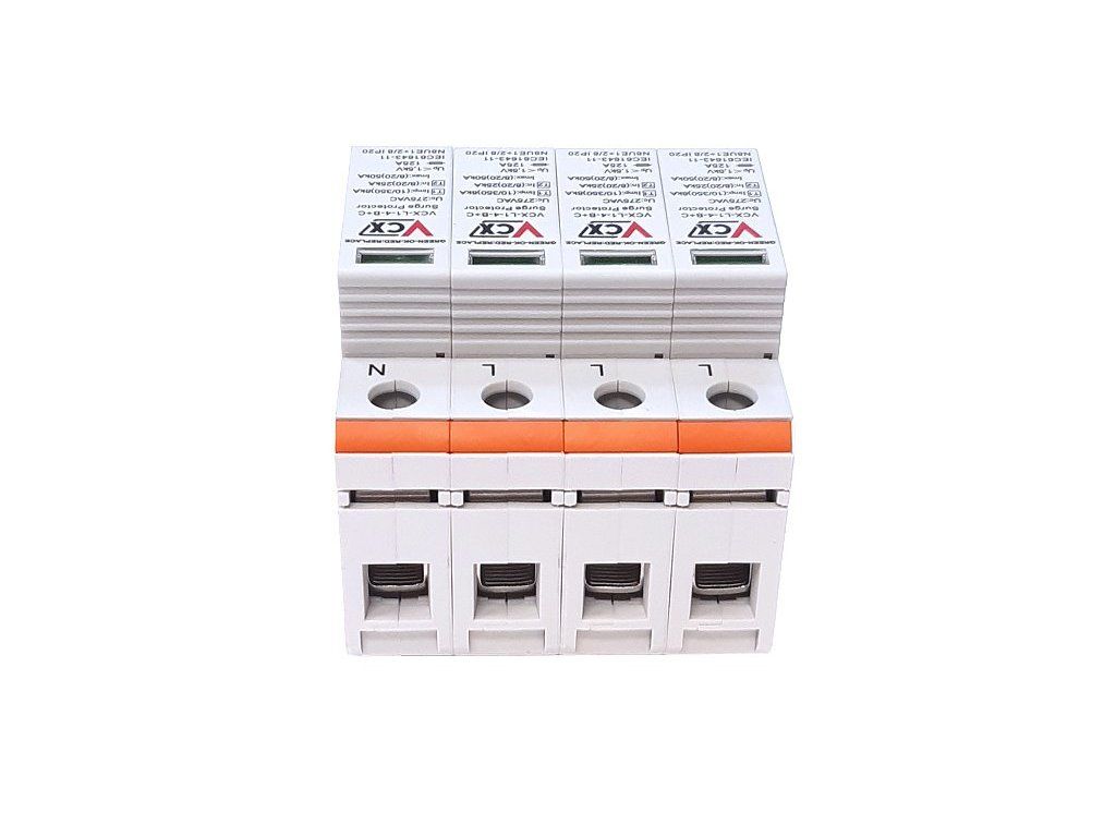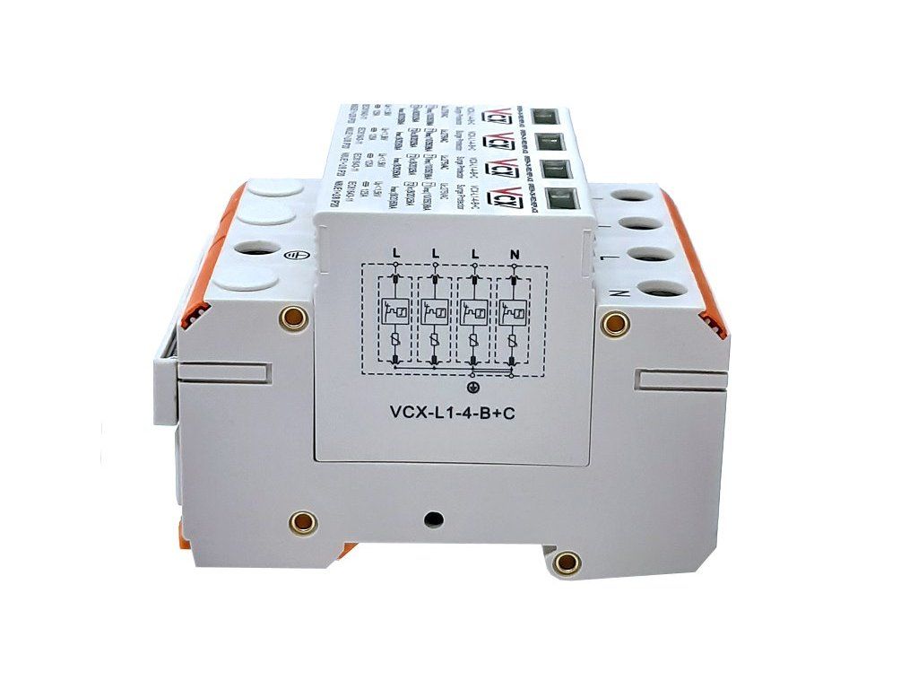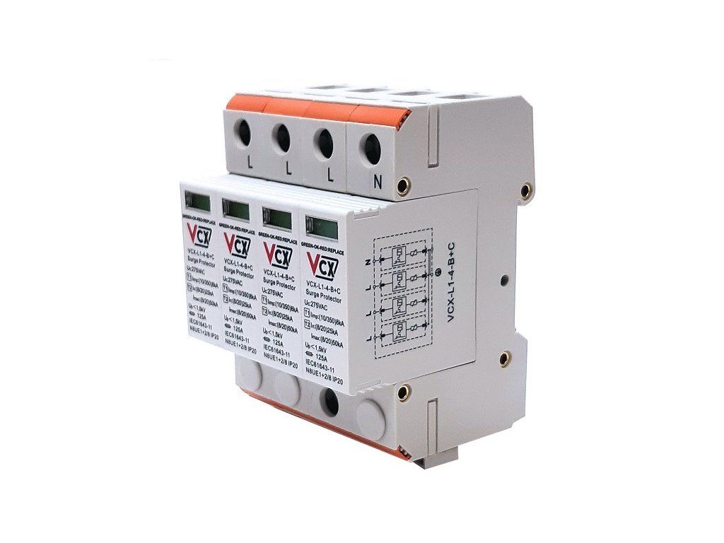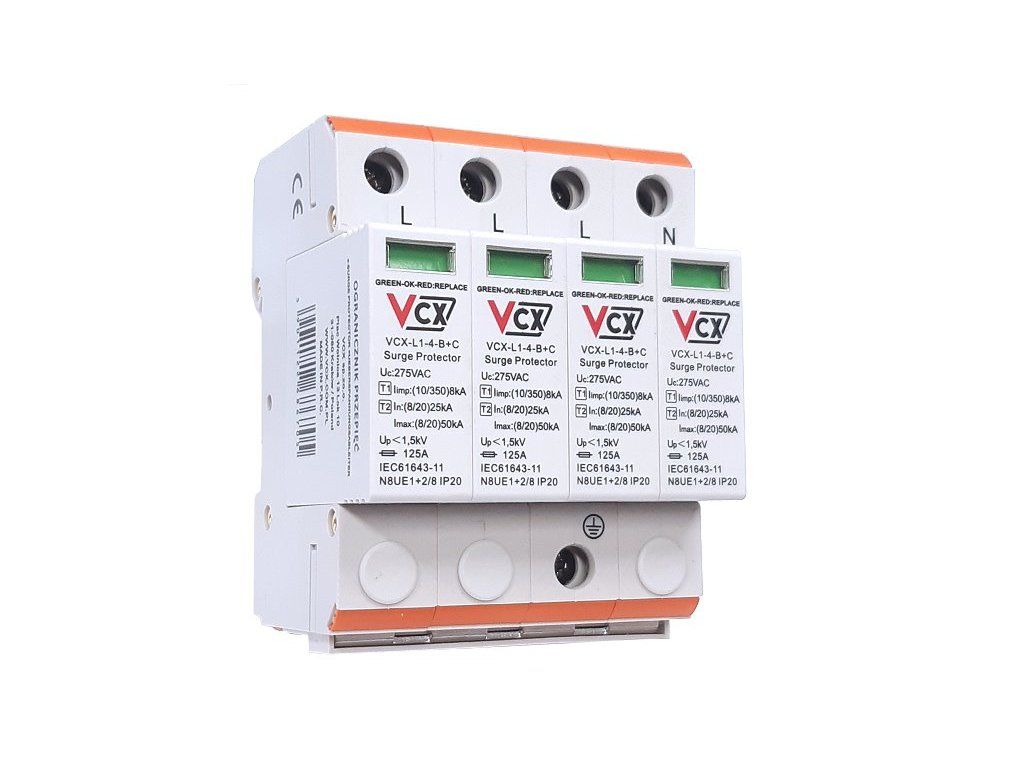 Modulární přepěťová ochrana VCX-L1-4-B+C 8 kA třídy T1+T2 je určená k ochraně napájecích instalací NN proti indukovaným a spínacím přepětím.