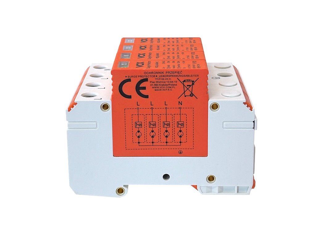 Použití modulárních přepěťových ochran VCX-B+C třídy T1+T2 nevyžaduje použití oddělovacích tlumivek. Poskytují účinnou ochranu počítačů, domácích spotřebičů atd. Jsou vybaveny vizuálním indikátorem provozu (zelená - ochrana, červená - bez ochrany).