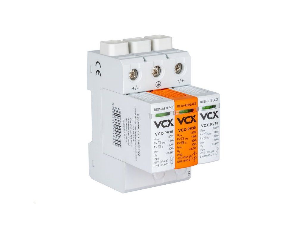 Profesionální přepěťová ochrana VCX DC T1+T2 (B+C) 3P 1200V 14kA – maximální bezpečnost pro vaše fotovoltaické zařízení