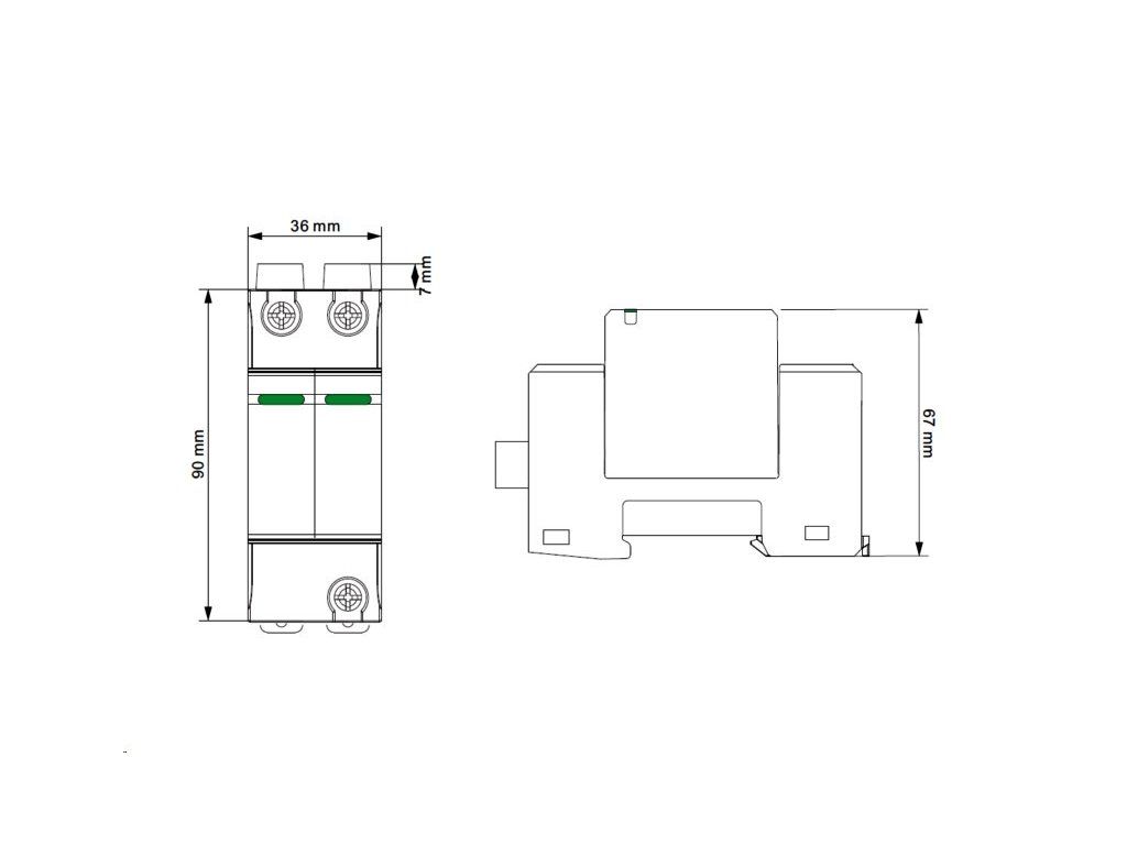 Tato přepěťová ochrana je určena pro přímé použití v DC částech fotovoltaických elektráren do maximálního napětí 700 V DC. Hodí se jak pro malé domácí systémy, tak i pro větší střešní instalace. Díky kompaktním rozměrům (2P) a možnosti připojení vodičů až do 35 mm² je montáž snadná a flexibilní. Stupeň krytí IP20 zajišťuje dostatečnou ochranu pro montáž do rozvaděčů.