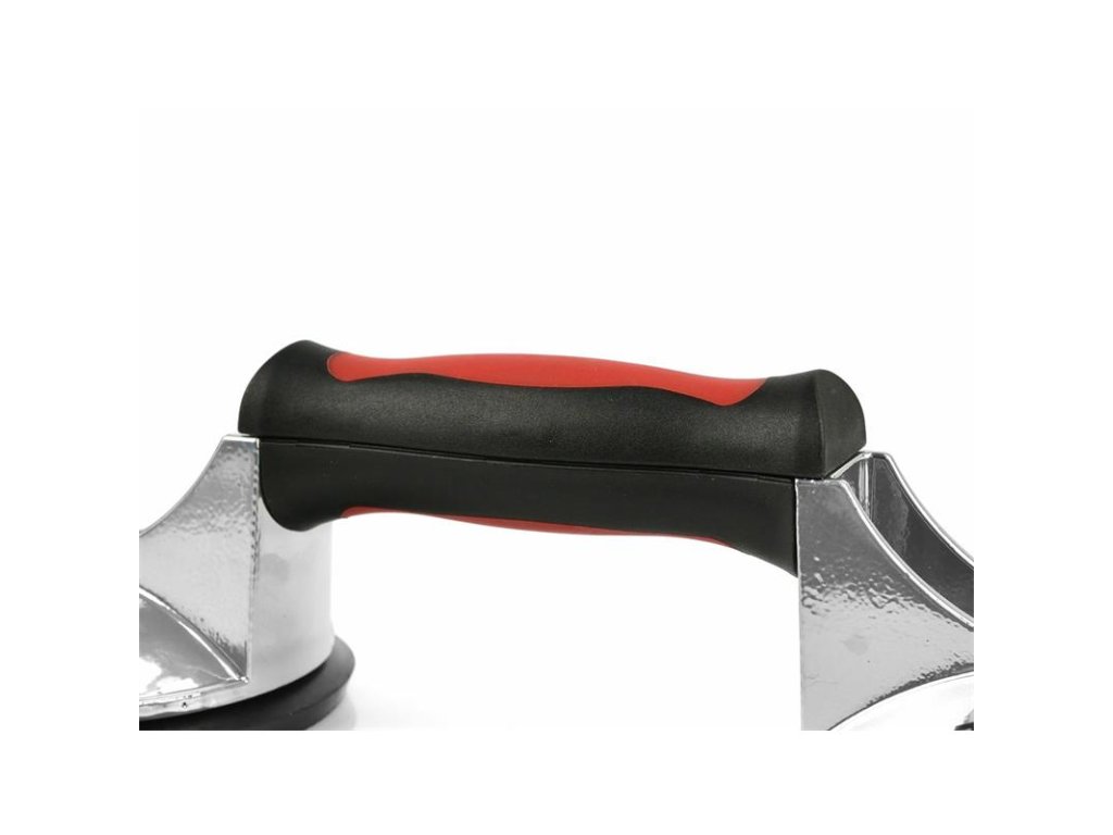 Osvedčená prísavka na sklo a obkladačky je určená na prepravu rôznych prvkov s hladkým povrchom, napr. skla, okien, autoskiel, plechu, laminátov a pod. ktorých hmotnosť nepresahuje 120 kg. Hliníková konštrukcia a gumová prísavka zabezpečujú bezpečnú manipuláciu s predmetmi. Široký rozsah použitia uľahčí prácu profesionálom aj amatérom.