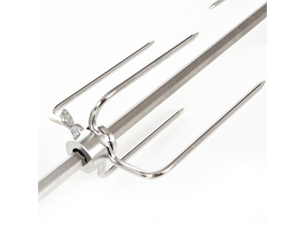 Grilovacia ihla s motorom je vyrobená z nerezovej ocele a z oboch strán je vybavená štyrmi ihlicami s aretačnými skrutkami, vďaka ktorým si môžete ihlice nastaviť podľa vlastnej potreby.