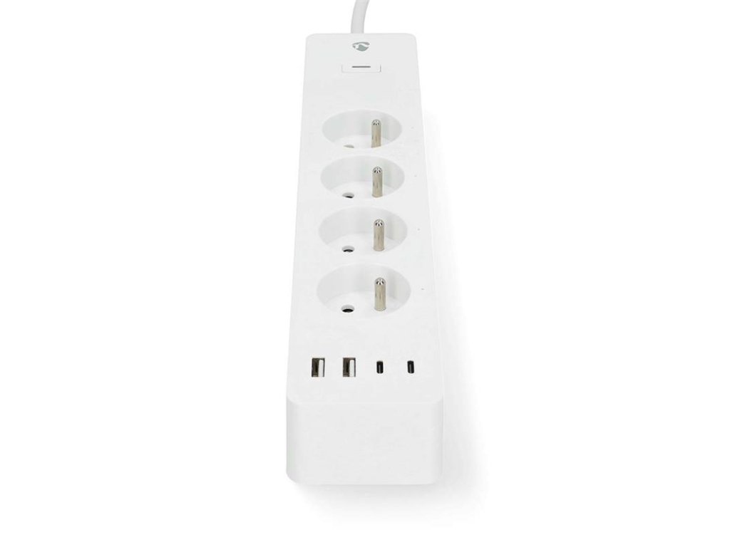 Moderní chytrá Wi-Fi prodlužovací zásuvka od značky NEDIS v sobě spojuje 4 klasické napájecí zásuvky a 4 USB porty (2× USB-A a 2× USB-C) pro snadné ovládání a napájení všech vašich zařízení. Ať už jde o televizi, notebook, konzoli či chytrý telefon, máte je pod kontrolou odkudkoli pomocí aplikace Nedis SmartLife.