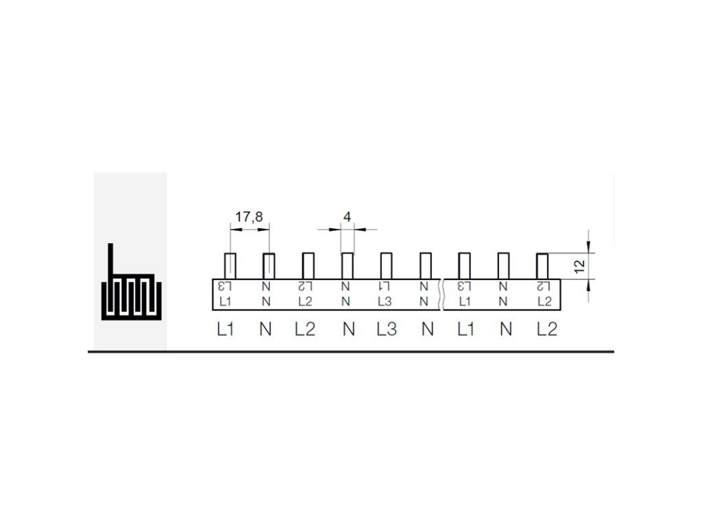 Prop. lišta S-L1+N-L2+N-L3+N-1000/16, kolík (jazýček), 4pól., 80A, rozteč 17,8mm, 16mm2, 1m, přip. míst = 54, rozměr kolíku 4x11,5mm, koncovka EK-C-4/16. Propojovací fázové lišty umožňují propojení modulových přístrojů (např. jističů, chráničů, modulových vypínačů apod.) jednoduchým a profesionálním způsobem. Standardní délky lišt jsou 210 mm (propojení 12ti modulů) nebo 1 metr. Tyto standardní rozměry lze libovolně krátit (konce lišt doporučujeme osadit plastovými koncovkami). Ve srovnání s klasickou instalací pomocí kabelových mostů nabízí propojovací lišty následující výhody:• spolehlivé přiřazení fází