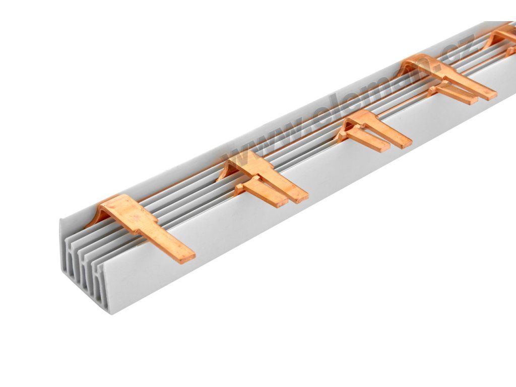 Prop. lišta S-L1+N-L2+N-L3+N-1000/16 P 2220429 lišta 4 fáz. vybočená. Propojovací fázové lišty umožňují propojení modulových přístrojů (např. jističů, chráničů, modulových vypínačů apod.) jednoduchým a profesionálním způsobem. Standardní délky lišt jsou 210 mm (propojení 12ti modulů) nebo 1 metr. Tyto standardní rozměry lze libovolně krátit (konce lišt doporučujeme osadit plastovými koncovkami).Dodatočné parametre