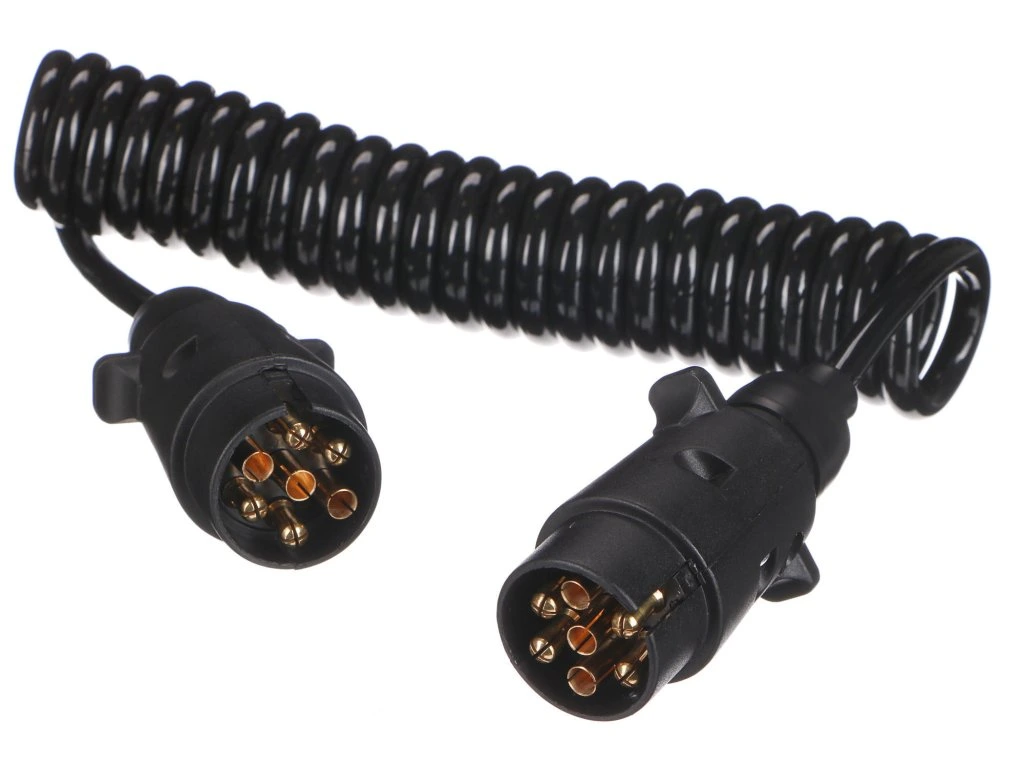 Spirálový propojovací kabel SIXTOL TRAILER CABLE 3 je určen k propojení vozidla a přívěsu pomocí standardního 7pinového zapojení a díky své pružné spirálové konstrukci zajišťuje dostatek délky při jízdě i manévrování, aniž by se přebytečný kabel povaloval nebo zachytával o překážky. Obě 7pinové zástrčky jsou vyrobeny z odolného plastu s pevnými a přesně vedenými kontakty, což garantuje spolehlivý přenos světelných funkcí v různých povětrnostních podmínkách. Kabel je v klidovém stavu kompaktní a snadno skladný, zatímco jeho pracovní délka až 3 metry poskytuje mimořádnou flexibilitu a komfort při používání, a to jak pro osobní automobily, tak pro lehké užitkové vozy.Hlavní výhody: