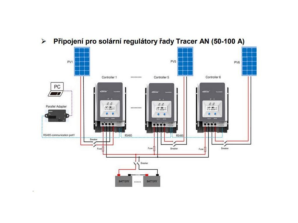 - Podporováno je až 6 paralelně zapojených solárních MPPT regulátorů série AN