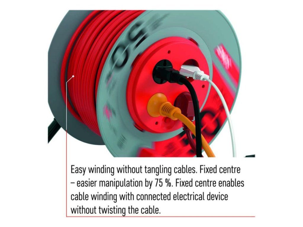 Navijak má pevný stred, čo je veľkou výhodou pri manipulácii (odvíjaní/navíjaní) s pripojenými spotrebičmi.