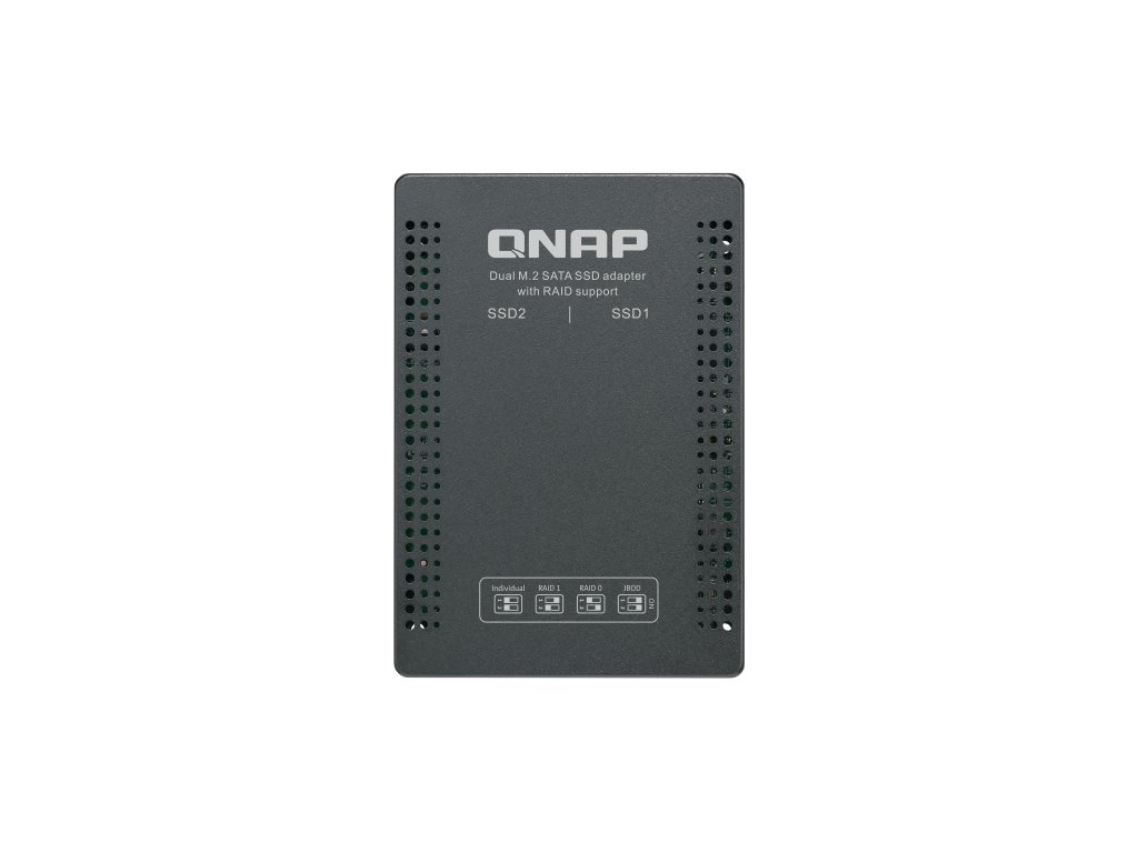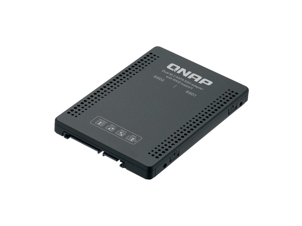 QDA-A2MAR Použijte dva M.2 SATA SSD moduly v jedné 2,5” pozici pro diskové jednotky SATA s podporou RAID pro počítače a NAS Odkaz na web výrobce: Video: Funkce Model QDA-A2MAR může pojmout dva M.2 SATA SSD moduly do jedné 2,5” pozice pro diskové jednotky SATA. Pro QDA-A2MAR není nutný žádný softwarový ovladač a lze jej nainstalovat do počítače/pracovní stanice (Windows®, Linux®) nebo QNAP NAS, aby bylo možné flexibilně přidávat vysoce výkonné M.2 SATA SSD s konfiguracemi RAID s ohledem na různé úložné potřeby. *Použijte dva M.2 2280 SATA SSD moduly do jedné 2,5” diskové pozice. (M.2 SSD se prodávají samostatně) *Rychlosti přenosu souborů až 6 Gb/s. Může se jednat o primární spustitelné zařízení pro počítače. *Zvolte si hardwarovou skupinu RAID s přepínačem diskového režimu. Model QDA-A2MAR podporuje různé konfigurace RAID. V závislosti na svých požadavcích můžete použít obsažený kovový přepínač jako nástroj pro přepínání diskového režimu pro výběr ideálního režimu RAID: Individuální, JBOD, RAID 0 nebo RAID 1. Uživatelé systému Windows® mohou používat nástroj QNAP External RAID Manager ke zobrazení stavu skupiny RAID a informací o zdraví disku. Při používání dvou M.2 SSD místo jednoho 2,5” disku v počítači/pracovní stanici (Windows® nebo Linux®) můžete vytvořit RAID 0 pro zvýšený výkon nebo RAID 1 pro přidání redundance dat zajišťující větší ochranu dat. M.2 SSD také umožní dosáhnout maximálního výkonu a nižší latence, což je ideální pro editaci videí za provozu a serverové aplikace. Nástroj QNAP External RAID Manager umožňuje uživatelům Windows® zobrazovat stav disků a informace o RAID modelu QDA-A2MAR. Aktualizace firmwaru pro zařízení QDA-A2MAR lze také spravovat pomocí nástroje External RAID Manager. Model QDA-A2MAR podporuje hardwarový RAID, který nespotřebovává zdroje CPU pro zachování optimálního výkonu NAS. Můžete nainstalovat jeden nebo více zařízení QDA-A2MAR do NAS a maximalizovat tak využití dostupných 2,5” pozic pro diskové jednotky. Zařízení QDA-A2MAR může obsáhnout dva M.2 SSD moduly, které umožňují vytvořit svazek SSD pro výkonově náročné pracovní postupy nebo práci v efektivním prostředí stupňovaného úložiště s Qtier. Může také zvýšit výkon IOPS, pokud se nakonfiguruje SSD cache. Informace o RAID a zdraví disků zařízení QDA-A2MAR lze monitorovat prostřednictvím Správce úložiště a snímků QTS. OBSAH BALENÍ *QDA-A2MAR *Pan head screw x2 (for M.2 SSD) *RAID Switch Tool *M.2 SSD Thermal Pads x6 *Quick Installation Guide (QIG) SPECIFIKACE Minimum operating system requirements *QNAP NAS: QTS 4.4.1 and later *Windows: Windows 7 and later, Windows Server 2012 R2 and later *Linux Software Utility Features *QNAP External RAID Manager *Overview device, disks, and RAID info and status *Support for disk’s S.M.A.R.T. monitoring *Desktop notification to inform abnormal status *RAID rebuild *RAID recovery *Firmware update *Notification for new version of firmware and application *System event logs for troubleshooting *Export event logs to .csv file Note: Actual performance may vary depending on operating environment and other factors, such as RAID mode, RAID configuration, disk model and capacity. Více informací se dozvíte na stránkách výrobce