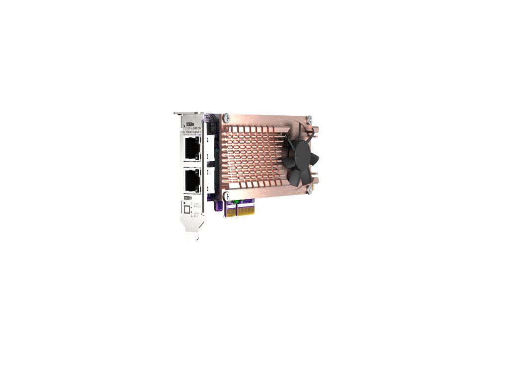 QNAP QM2-2P2G2T (přidání slotů M.2 SSD a připojení 2,5 GbE). Maximalizujte úložnou kapacitu, výkon a síťové připojení NAS. QM2-2P2G2T přidává podporu pro M.2 SSD a připojení 2,5 GbE k vašemu QNAP NAS. Spojením M.2 SSD a 2,5GbE konektivity do jednoho řešení rozšiřuje karta QM2 PCIe celkový výkon NAS tím, že umožňuje ukládání do mezipaměti SSD a zároveň poskytuje cenově dostupnou cestu k upgradu pro přijetí sítí 2,5 GbE. QM2-2P2G2T jako karta PCIe nezabírá žádné 3,5palcové pozice pro disky, což vám umožňuje upgradovat NAS bez ovlivnění vaší potenciální kapacity úložiště. Technické parametry *Konektor: 2 x M.2 2280 PCIe NVMe SSD sloty, 2 x 2,5GBASE-T porty *PCIe: PCIe Gen3 x4 *Přenosové rychlosti: 2,5G / 1G / 100M / 10M *Řadič: Intel Ethernet Controller I225-LM *Držák: Nízkoprofilový (výchozí). Součástí balení jsou také nízkoprofilové ploché a konzoly plné výšky. *Rozměry (D x Š x V): 152,65 x 68,9 x 20,6 mm *Kabel: RJ-45, přes kabel třídy CAT-5e Podporované operační systémy: QTS, QuTS hero (pro větší kompatibilitu se ujistěte, že používáte nejnovější verzi).Dodatočné parametre