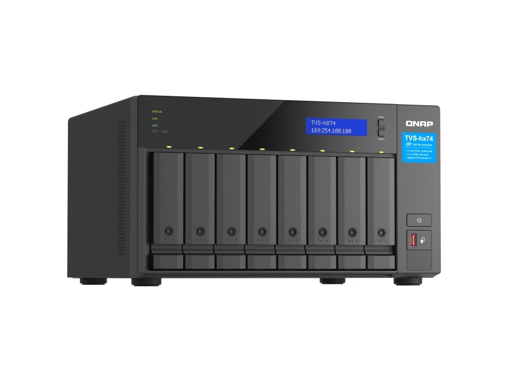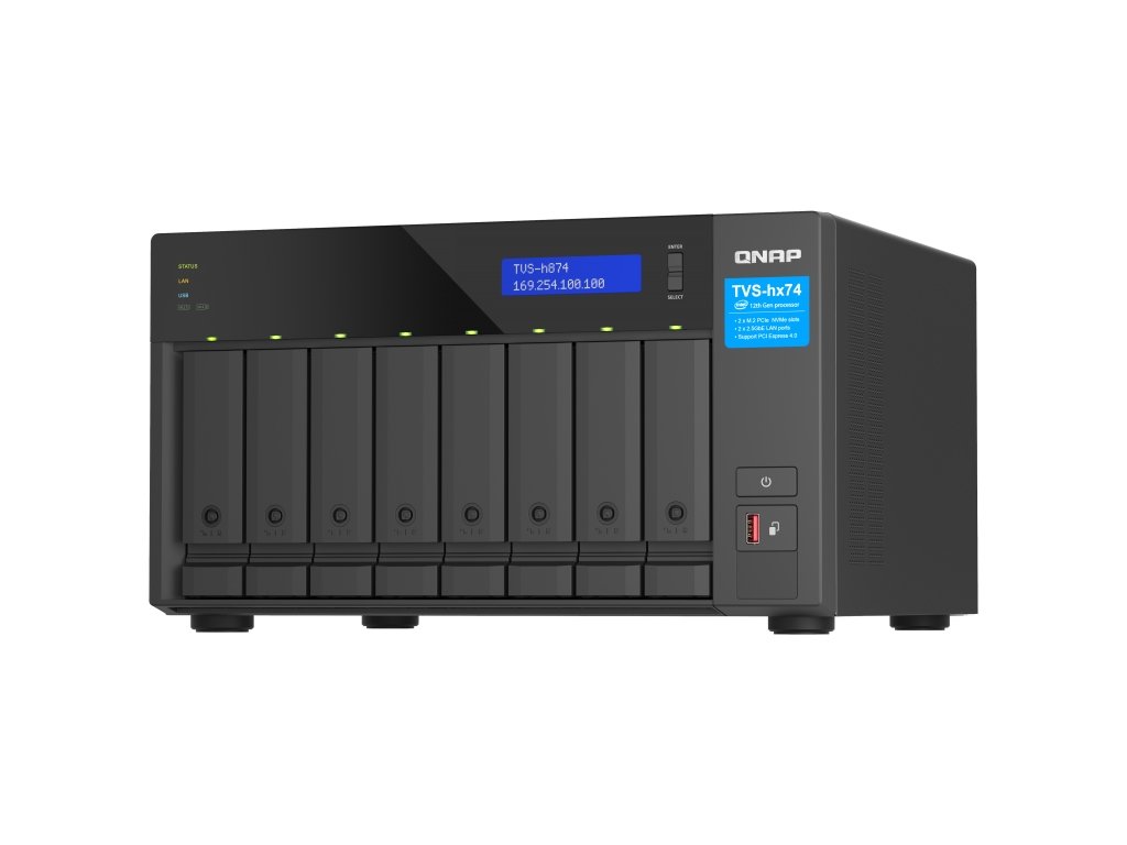 QNAP TVS-h874-i5-32G (6core 4,4GHz, ZFS, 32GB RAM, 8x SATA, 2x M.2 NVMe, 2x PCIe, 2x 2,5GbE, HDMI)