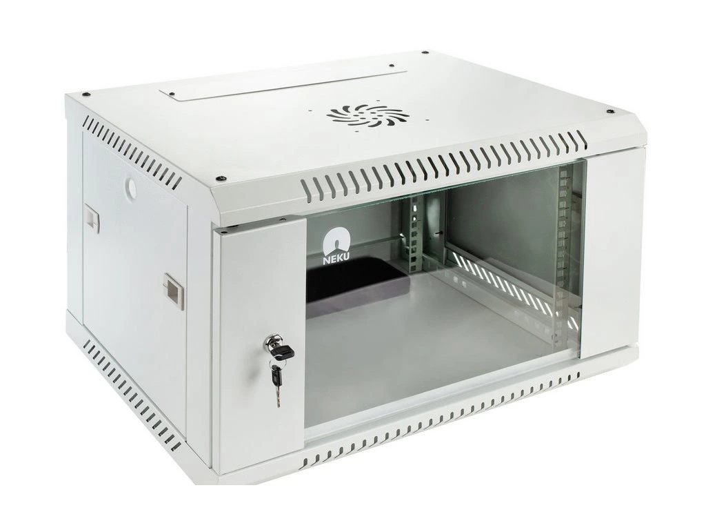Závesné rackové skrine NEKU 19” umožňujú správne usporiadanie aktívnych a pasívnych zariadení a vďaka efektívne navrhnutej pasívnej ventilácii poskytujú inštalovaným zariadeniam optimálne pracovné podmienky: chladenie, ochranu pred znečistením a ochranu pred neoprávneným prístupom. Zariadenia v nich namontované sú založené na medzinárodnom 19” rackovom štandarde, ale tiež tvoria základ pre nerackové a stolné zariadenia, ako sú: multiprepínače, rekordéry, zosilňovače alebo napájacie zdroje. Na montáž týchto zariadení potom slúžia vyhradené regálové police.
