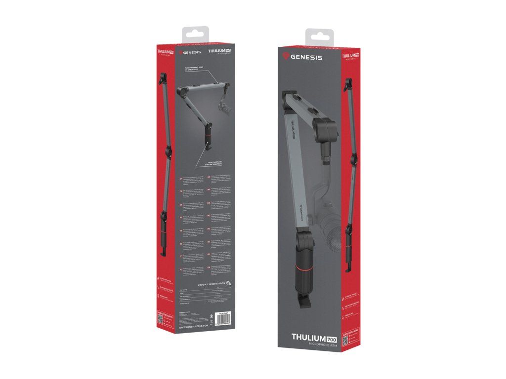 Objevte Thulium 700 - profesionální mikrofonní rameno určené pro nejnáročnější uživatele. Rameno Thulium 700 je kompatibilní s 99 % mikrofonů na trhu a je odpovědí na rostoucí potřeby hráčů, streamerů a tvůrců obsahu. Nabízí výjimečnou robustnost a stabilitu a jeho jedinečná konstrukce umožňuje práci s mikrofony o hmotnosti až 1 kg. Díky nastavitelné napínací síle a většímu úhlu sklopení než u konkurenčních modelů umožňuje rameno Thulium 700 pohodlnou montáž v široké škále pohodlných poloh na stole. ROBUSTNÍ KONSTRUKCE PRO STABILNÍ OPORU Model Thulium 700 se vyznačuje mimořádně robustní konstrukcí, která zajišťuje vysokou stabilitu i pro velké a těžké mikrofony a další audiovizuální vybavení, jako jsou kamery a přídavné osvětlení. Robustní konstrukce udržuje rameno stabilní v nastavené poloze, což je pro profesionální nahrávání bez vibrací a kývání klíčové. Relativně vysoká minimální napínací síla snižuje riziko poškození zařízení i při extrémním naklonění. SPOLEHLIVÁ MONTÁŽ NA RŮZNÉ POVRCHY Pokročilý montážní systém Thulium 700 umožňuje velmi bezpečné připevnění ramene k desce stolu o tloušťce 18-60 mm pomocí originální svorky. Pro desky o tloušťce 10-60 mm nebo se zkosenou hranou lze alternativně použít šroubový držák o průměru 10 mm s možností provrtání desky. Obě řešení poskytují bezkonkurenční flexibilitu a bezpečnost instalace v jakémkoli pracovním prostředí. NAPĚTÍ NASTAVITELNÉ PODLE HMOTNOSTI MIKROFONU Rameno Thulium 700 je vybaveno systémem nastavení tahu, který umožňuje snadno nastavit jeho polohu podle hmotnosti mikrofonu nebo jiného kompatibilního zařízení. Pro nastavení napětí stačí utáhnout nebo povolit šroub ukrytý uvnitř základny ramene a nastavit 3 aretační knoflíky požadované polohy. Správné nastavení napnutí zajistí, že následné změny polohy nebudou vyžadovat utahování knoflíků pro stejné zařízení. RŮZNÝ ÚHEL OHYBU PRO PRUŽNÉ NASTAVENÍ Díky své speciální konstrukci umožňuje rameno Thulium 700 velkou flexibilitu, pokud jde o úhly ohybu, a tím i snadnější nastavení polohy mikrofonu ve srovnání s jinými rameny na trhu. Spodní část ramene lze ohnout dozadu maximálně o 152° při zachování úhlu 55,5° mezi ní a horní částí. Tato funkce je mimořádně užitečná pro hráče, streamery a tvůrce obsahu, protože umožňuje umístit příslušenství blízko obličeje a zároveň udržet rameno v požadované poloze v záběru nahrávání. Maximální úhly ohybu jsou znázorněny v grafice - je třeba poznamenat, že se mohou mírně lišit v závislosti na nastaveném napětí. ADAPTÉRY PRO RŮZNÉ MIKROFONY A DALŠÍ ZAŘÍZENÍ Sada Thulium 700 obsahuje diskrétní černěný adaptér z 3/8'' na 5/8'', který umožňuje montáž téměř jakéhokoli mikrofonu dostupného na trhu, včetně naší vlajkové lodi Radium 600 G2. Rameno je navíc vybaveno adaptérem s 1/4'' fotografickým závitem, takže jsme schopni připojit širokou škálu dalších audiovizuálních zařízení, jako jsou fotoaparáty a videokamery, přídavné osvětlení, držáky na chytré telefony a další. Díky matně černému zbarvení adaptéry dokonale zapadají do designu ramene a při nahrávání se silným světlem nedochází k nežádoucím odleskům. USPOŘÁDÁNÍ KABELŮ DÍKY SPECIÁLNÍM SPONÁM Rameno Thulium 700 se dodává až se dvěma sadami vyměnitelných svorek pro kabely USB a XLR o tloušťce 6 mm , resp. 8 mm. Každá sada obsahuje 4 svorky, 2 pro každou z dlouhých částí ramene. Díky nim můžete zabránit uvolnění kabelů (zejména tenčích USB kabelů) a zachovat dokonalý pořádek a estetiku na pracovišti, což je důležité zejména v profesionálním nahrávacím prostředí. ELEGANTNÍ A ATRAKTIVNÍ POVRCHOVÁ ÚPRAVA Rameno Thulium 700 je vyvedeno v herních barvách černé, červené a kovové, což se projevuje na univerzálně atraktivním vzhledu streamů a videí. Díky elegantní povrchové úpravě a konzistentnímu designu, který odpovídá našim sluchátkům Toron 531, vytváří rameno Thulium 700 stylovou a profesionální herní náhlavní soupravu, jejíž luxusní vzhled plně odráží kvalitu jejího provedení. VLASTNOSTI: - Vysoká nosnost - vhodné pro profesionální mikrofony - Vhodné pro silné desky stolů - Dvě sady kabelových svorek pro kabely USB a XLR SPECIFIKACE: Držák mikrofonu: Stativový závit 3/8“ Stativový závit: 5/8“ Barva: šedá Materiál: Eloxovaný hliník Lze připevnit na desky o tloušťce: 18 - 60 mm Hmotnost: 1100 g CZ prémiové popisky ke stažení: https://opisy.impakt.com.pl/download-template/44330/new-genesis-default/genesis-cz__rami-do-mikrofonu-genesis-thulium-700Dodatočné parametre