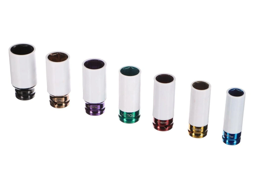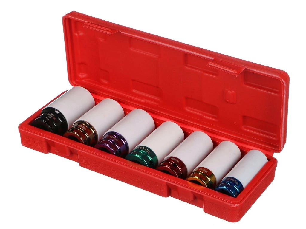 Sada SIXTOL MECHANIC IMPACT 4 je největší sada rázových hlavic v řadě MECHANIC IMPACT. Obsahuje sedm vysoce odolných hlavic vyrobených z chrom-molybdenové oceli (CrMo), která zajišťuje maximální pevnost a odolnost proti opotřebení. Hlavice mají plastový ochranný povlak, který zabraňuje poškrábání ráfků během manipulace. Barevné odlišení jednotlivých velikostí umožňuje rychlou a snadnou identifikaci mezi velikostmi 17, 19, 21, 22, 23, 24 a 27 mm. Sada je vhodná pro profesionální i hobby použití s pneumatickými a elektrickými rázovými utahováky s uchycením 1/2".Hlavní výhody: