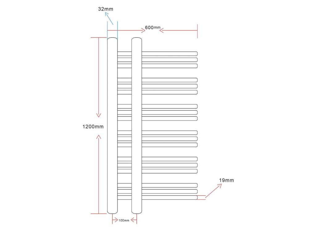 Rebríkový radiátor na centrálne vykurovanie, v tvare E 600x1200 mm