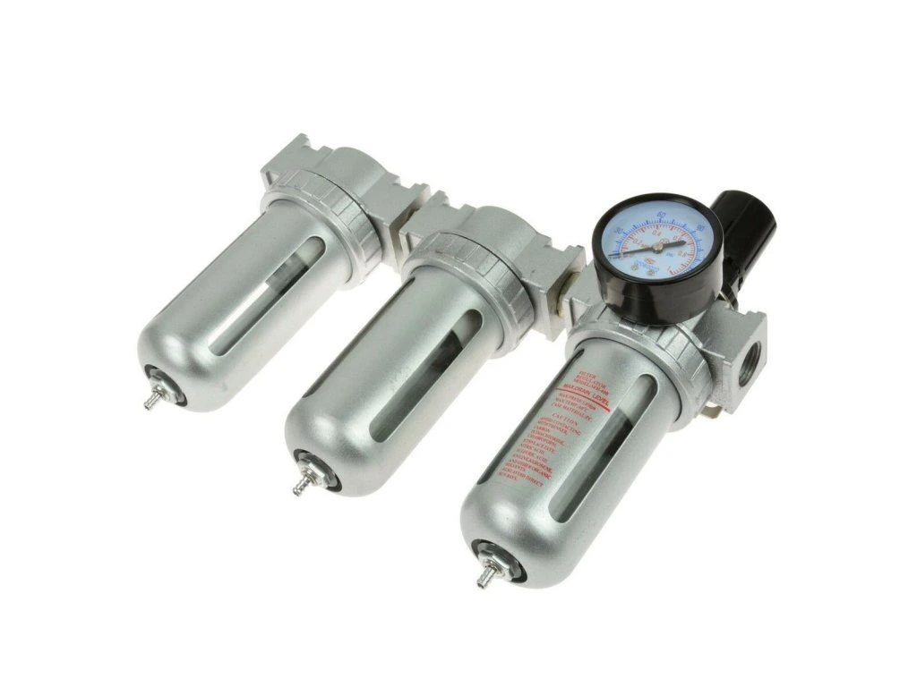 - Třístupňový vzduchový filtr/regulátor/manometr.