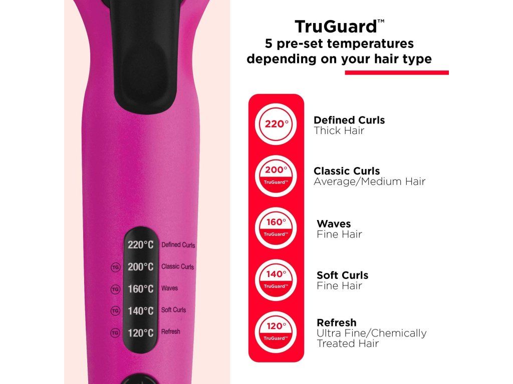 Špeciálne pre starostlivosť o farbené vlasy je táto kulma vybavená unikátnymi 4 nastaveniami TruGuard™. Tieto nastavenia sú starostlivo optimalizované tak, aby minimalizovali poškodenie vlasov teplom, ktoré je pre farbené a chemicky ošetrené vlasy obzvlášť rizikové. Vďaka tomu si môžete byť istí, že váš účes bude nielen dokonale upravený, ale vaša farba zostane dlhšie sýta a žiarivá a vlasy si zachovajú svoju vitalitu a lesk aj pri pravidelnom stylingu.
