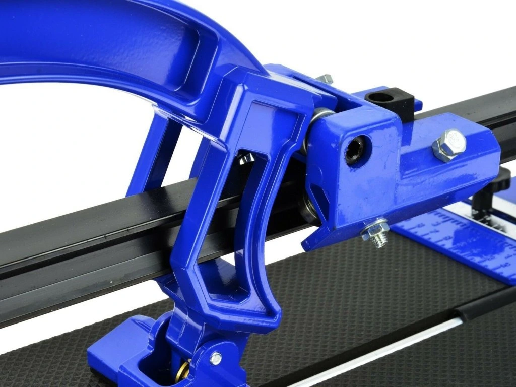 - Stabilní kolejnice s řezacím mechanismem na kuličkových ložiscích zajišťuje přesné řezání dlaždic do tloušťky 16mm.