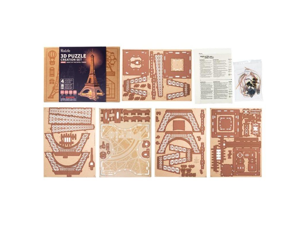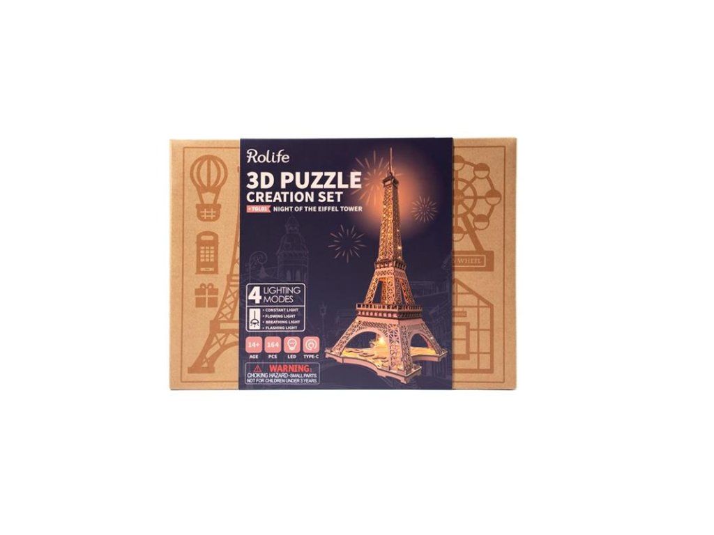 Někdy to vypadá, že do Paříže se prostě nedostaneme dost často. Jaké by to bylo, kdybyste mohli mít kousek romantické Paříže ve svém obývacím pokoji? Představujeme vám 3D Dřevěné puzzle Rolife Noc Eiffelovy věže. Skrze toto puzzle můžete cestovat časem až do roku 1889 a pocítit sílu a nádheru nejslavnější francouzské architektury. Tato replika Eiffelovy věže je zmenšeninou v měřítku 1:638 a zachovává veškerou krásu a genialitu originálu. Naši řemeslníci se pečlivě drželi původního designu ikonické mřížové architektury a 4dílné struktury, aby vytvořili tento model s vzhledem rezavého tepaného železa. Ale to není vše! Toto dřevěné 3D puzzle Rolife také obsahuje čtyři režimy osvětlení, které dodávají snovou a romantickou atmosféru, která se hodí k tajemné noci v Paříži.Představte si, jak se postupně budujete tento model, přičemž každý kus překližky přeřezávaný laserem zapadá na své místo. Jak se s každou přidanou částí ponoříte hlouběji do doby, kdy byla Eiffelova věž postavena. V duchu cítíte vibrace Paříže, slyšíte šum ulic a vůni čerstvého bagetu. A pak, jakmile je model hotov, zapnete osvětlení a najednou máte svůj vlastní malý kus Paříže přímo doma a zažijte radost z vytvoření vlastního mistrovského díla. Dodáváno v kartonové krabičce s detailním návodem k sestavení. Upozornění: Není vhodné pro děti do 3 let, protože obsahuje malé součásti – hrozí nebezpečí udušení. Balící materiál není hračka. Hlavní vlastnosti: 164 precizně vyřezávaných dílůstřední obtížnost sestaveníLED osvětlenímateriál dřevovhodné od 14 letDodatočné parametre