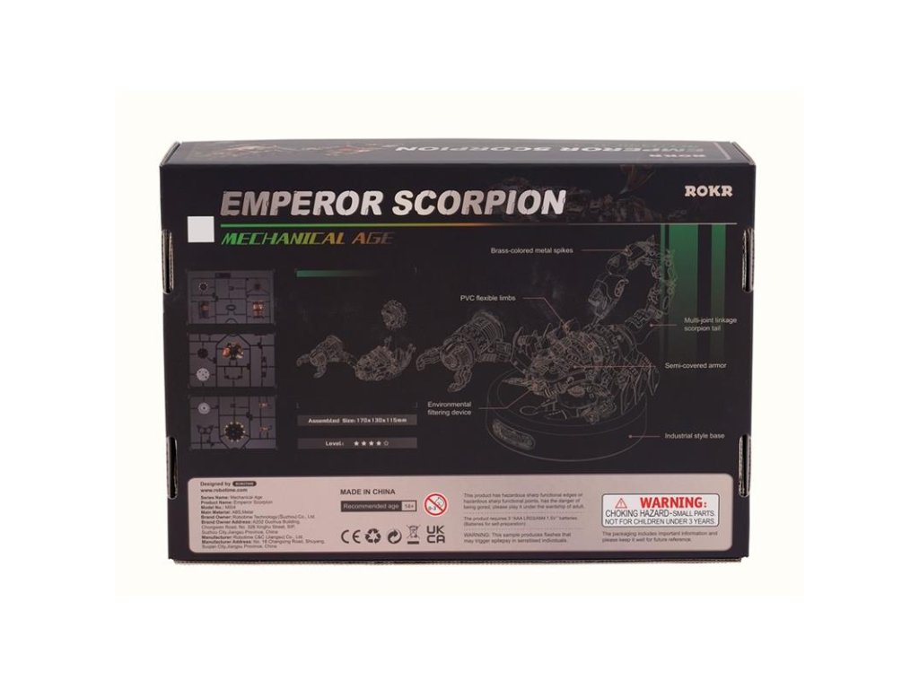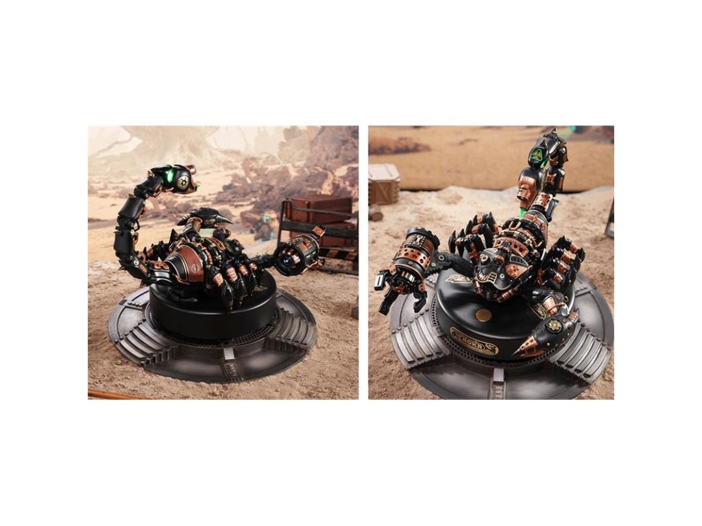 Seznamte se s RoboTime 3D mechanickým puzzle modelem Císař Scorpion, který přináší vzrušení a adrenalin do vašeho života. Tento špičkový predátor, sestavený z 123 dílů, se chystá ovládnout vaše bitevní pole. Připravte se na dobrodružství plné nekompromisní akce! RoboTime 3D Císař Scorpion je nejen hrůzostrašný stroj, ale také umělecké dílo. Jeho design je inspirován steampunkem, což mu dodává retro-futuristický vzhled. I přes svou sofistikovanou mechaniku a náročný design, jeho sestavení je snadné díky jasným pokynům a dílům vyrobeným z ABS polymeru, kovu a kůže. Dokážete si představit lepší způsob, jak strávit 4 hodiny svého času? Jakmile je vypuštěný, Císař Scorpion je nepřekonatelný. Jeho vysoce mechanizovaná transformace způsobí, že se vaši nepřátelé budou třást strachem. Jeho pravá klešť se vyvinula do třídrápového uchopovacího ramene se silným jádrem, které mu umožňuje využívat různé režimy rotace k roztrhání nepřátel. Jeho tyčící se ocas je vybavený ostrými hroty a září modrým světlem, což umožňuje bodat s úžasnou přesností, zatímco zelené světlo označuje smrtící neurotoxiny ocasu, které mohou zabít s jedním zásahem. Nechte se pohltit tímto fascinujícím projektem, který potěší jak vaši mysl, tak vaše ruce. Sestavte svého vlastního císaře Scorpiona a poznejte adrenalin, který přináší bitva. Nekompromisní, kreativní a vysoce originální – RoboTime 3D mechanické puzzle modelu Císař Scorpion bude okrasou vašeho obývacího pokoje, nebo jako dárek pro všechny dospívající a dospělé nadšence fascinující hmyzí říše a robotických modelů. Vyrobeno z bezpečného, netoxického a ekologicky šetrného materiálu. Baterie není součástí balení. Hlavní vlastnosti: celkový počet dílů 123počet plastových dílů 67obtížnost střednídoba montáže cca 4 hodinymodré/zelené světlo na konci bodce na ocasu, podle typu útokupohyblivé třídrápové uchopovací ramenovyžaduje 3 kusy baterií (AAA/LR03/AM4 1,5 V)vhodné od 14 letDodatočné parametre