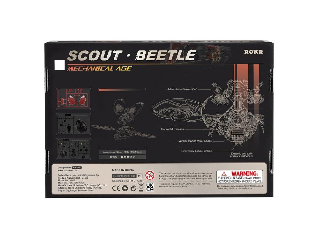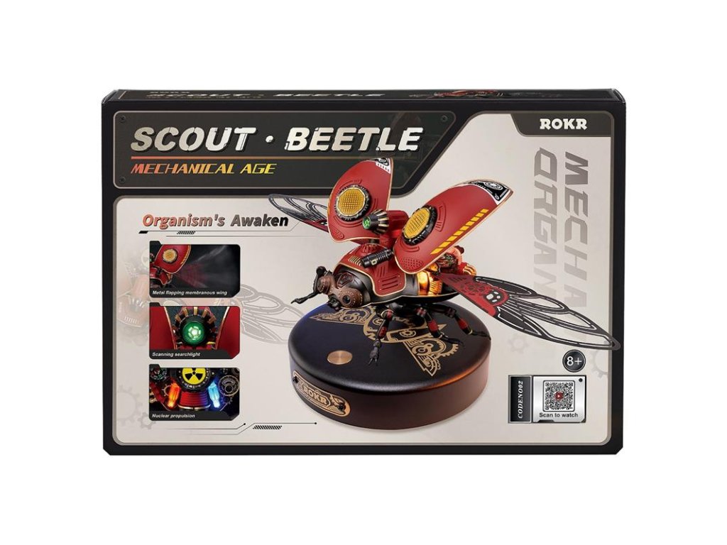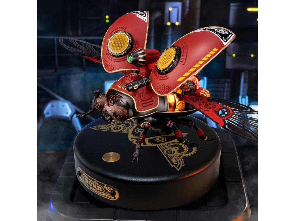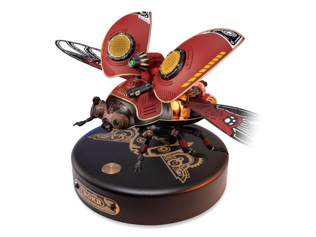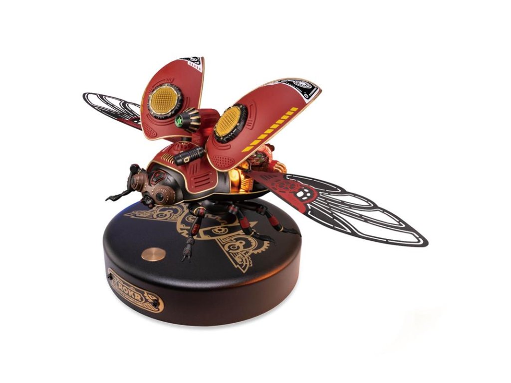 Originální mechanický brouk je připraven k průzkumnému letu! Nechejte se okouzlit atraktivním provedením a výbavou. Při jeho sestavování prověříte svůj důvtip, trpělivost a zručnost. Až budete s prací hotovi, můžete obdivovat, jak mává křídly a osvětluje okolí ve snaze vyhnout se nebezpečí. Na poličkách fanoušků science fiction a steampunku se bude zvláště vyjímat!