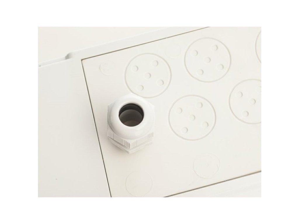Plastová rozvodnice AcquaPLUS 39018 ve vyšším krytí IP65, EXTRA prostorná (57mm pod DIN lištou), 1x18mod., rozměry: 290x430x160mm, svorkovnice PE/N součástí, montáž na omítku, průhledná dvířka, barva: světle šedá. Plastová rozvodnice AcquaPLUS 39018 ve vyšším krytí IP65, rozměry: 290x430x160mm (výška x šířka x hloubka), prostor pro kabeláž pod DIN lištou/lištami: 57mm, 1x18mod.(TE), IK08, plastová, materiál ABS, zkouška žhavou smyčkou 650°C, bezhalogenová a UV odolná, montáž na povrch, barva: světle šedá, rozsah teplot -25°C + 85°C, aplikované normy: EN 62208, balení: 1ks (krabice), polykarbonátová průhledná dvířka, PE svorkovnice součástí (10x 10mm2 a 10x16mm2) / N svorkovnice součástí (10x 10mm2 a 10x16mm2), předlisované otvory zaslepené gumovou membránovou průchodkou (stačí propíchnout) - kompatibilní s klasickými kabelovými vývodkami (vrchní strana: 2x20, 8x25, 1x35; spodní strana: 2x20, 8x25, 1x35), schopnost rozptylu tepla: 36W, dokoupitelné příslušenství: kovový zámek 3900. Pro montáž na hořlavé podklady je nutné použít nehořlavou podložku.