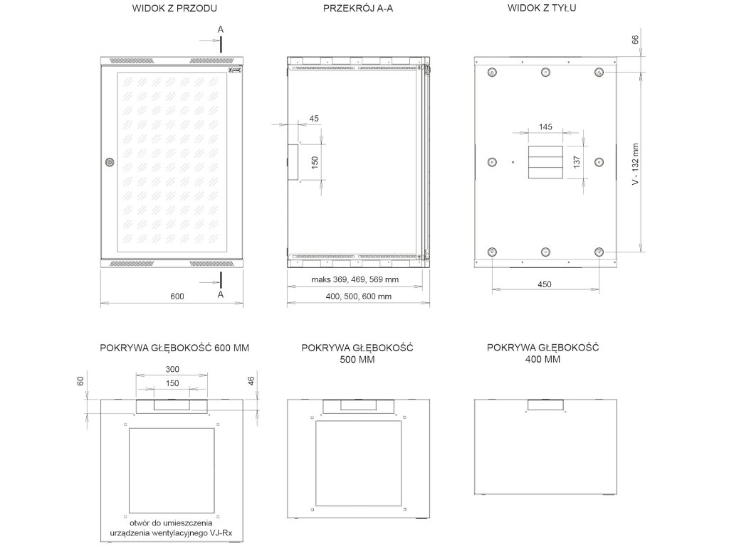 Hloubka: 400, 500, 600 mm