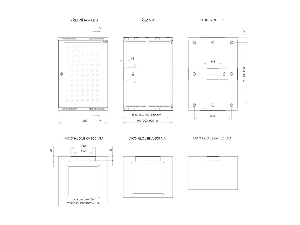 Hloubka: 400, 500, 600 mm