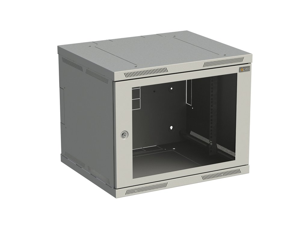 Rozvaděč nástěnný SENSA 9U 500mm, dveře sklo, RAL 7035, SENSA-9U-65-11-G