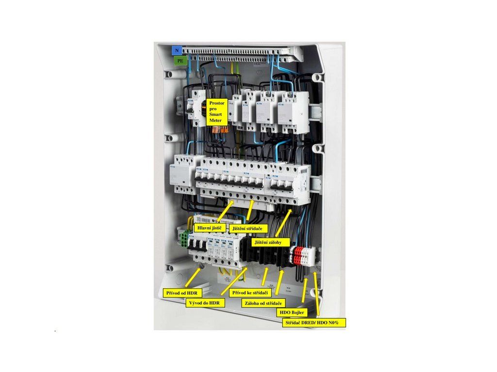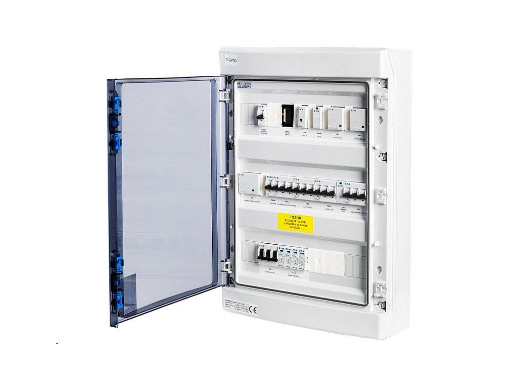 V rozváděči je připraveno i krizové odpojení střídače HDO (N0%) a příprava na osazení FIRE-SAFETY řešení. Typ GW25 je koncipován na hlavní jistič ve sloupku 25 A.