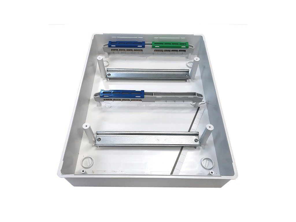 Je vybaven svorkovnicemi N+PE. Jako montážní prvek je v tomto rozváděči použit držák TH 35/7,5 (lišta), který umožňuje montáž miniaturních jističů, proudových chráničů a dalších elektrických zařízení.