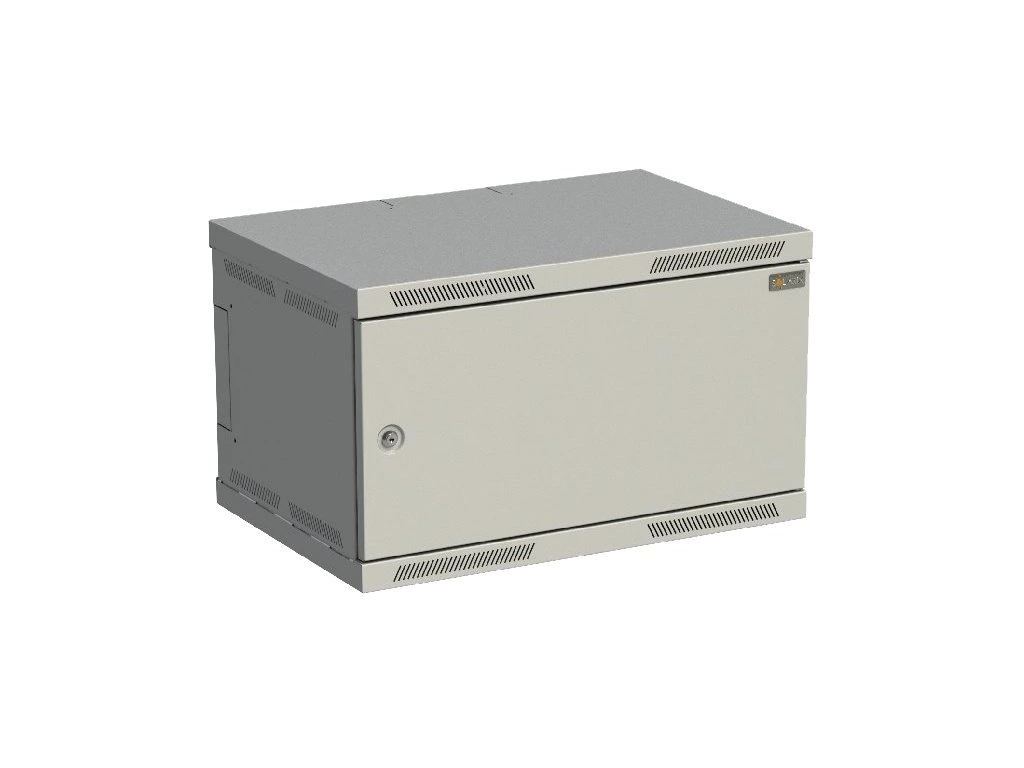 Nástěnná datová skříň SENSA nýtované konstrukce, je rozvaděč při jehož výrobě byl kladen důraz na spolehlivost a výhodnou cenu. V horním a spodním víku rozvaděče je umístěna perforace pro snadné odvětrávání vnitřního zařízení. Vstup kabelů je řešen vylamovacími otvory umístěnými v stropu, dnu, dále na bočních stranách rozvaděče a také v jeho zádech. Dveře jsou osazeny zámkem se dvěma klíči a skrytými otočnými závěsy. Technické parametry *Výška: 6U *Šířka: 600 mm *Hloubka: 400 mm *Konstrukce: plech síly 1,3mm, nosné lišty 1,5mm pozink *Nosnost: standard 45 kg (rovnoměrné zatížení) *IP krytí: standard IP20 *Barevné provedení: prášková barva v odstínu RAL 7035 šedáDodatočné parametre