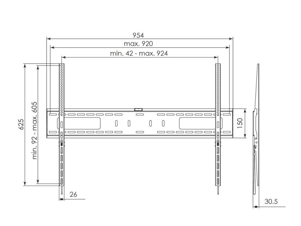 Tento nástěnný držák se vyznačuje automatickým mechanismem click-lock. Ten zajišťuje mimořádně bezpečné upevnění montážních ramen. Snadná montáž, podpořená přiloženou vodováhou, a možnost bočního posunu ramen zajišťují rychlé seřízení. Hlavní charakteristiky: - VESA 100x100 až 900x600 - nosnost 75 kg - bezpečnostní západky - vzdálenost od stěny 30 mm - barva černá - záruka 5 letDodatočné parametre