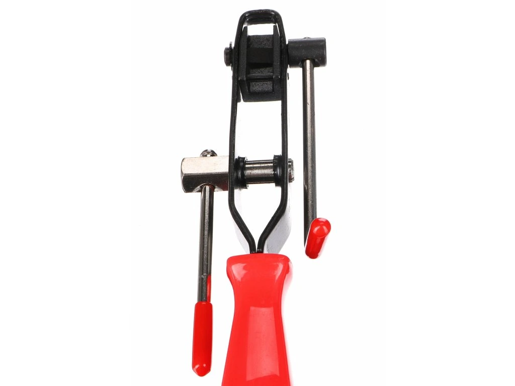 Kleště pro snadné upnutí kovových spon na manžety. Určeno na pásky o šířce 1/4 nebo 3/8 palce. Kleště jsou vybaveny nožem k přestřižení objímek. Kovové komponenty zajišťují odolnost a pevnost kleští. Rukojeť je vyrobena z umělé hmoty umožňující pohodlné uchopení. Kleště se používají k utažení objímek těsnících prstenů průchodek hnacích kloubů, nápravy, chladícího potrubí jak pevného tak ohebného v různých modelech aut.Hlavní výhody: