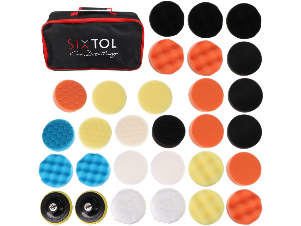 Sada leštících polštářků/houbiček s unašečem pro čištění auta CAR DETAILING PAD 30, 30ks SIXTOL