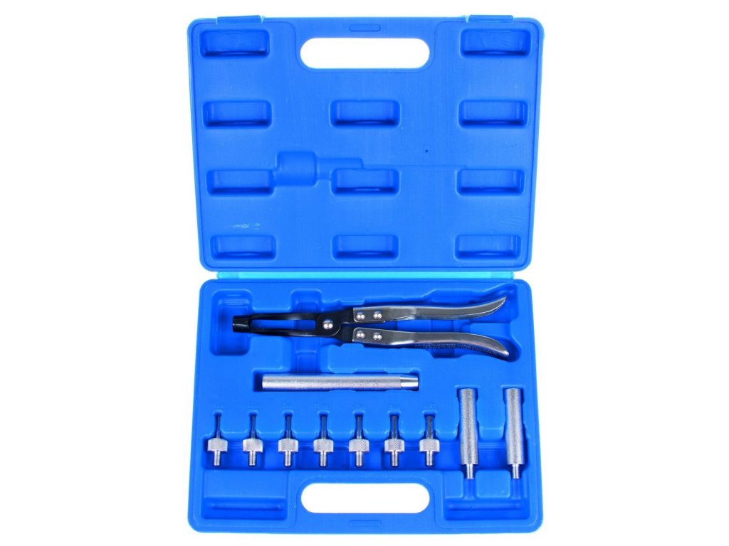 Praktická sada pro demontáž a instalaci těsnění ventilových dříků se používá jak u zamontovaných, tak i u vymontovaných ventilů. Sada obsahuje kleště na demontáž těsnění ventilových dříků (typ 1716), rukojeť dl. 150 mm, 2 kusy adaptérů pro hluboko osazená těsnění vnějšího průměru 10,8-14,8 mm a 7 kusů adaptérů pro těsnění 5/5,5/6/6,6/7/8 a 3/8".