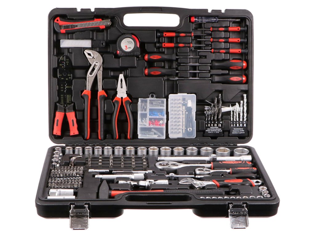 Univerzální domácí sada nářadí s 350 díly pro všechny opravné práce doma, v dílně nebo na zahradě. S touto sadou budete mít vždy všechno potřebné nářadí na jednom místě v odolném plastovém kufru . V sadě naleznete dvě ráčny se sadou hlavic, sadu šroubováků, různé typy kleští, sadu vrtáků do dřeva i do betonu, kladivo, metr, ostrý ulamovací nůž s vyměnitelnými břity, širokou škálu bitů i klíče na povolení svíčky. Sada nářadí SIXTOL HOME 350 by neměla chybět v domácí výbavě každého kutila nebo chalupáře, jelikož tuto sadu můžete díky přenosnému kufříku vzít také na cesty.Hlavní výhody: