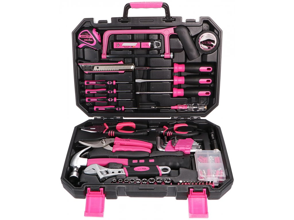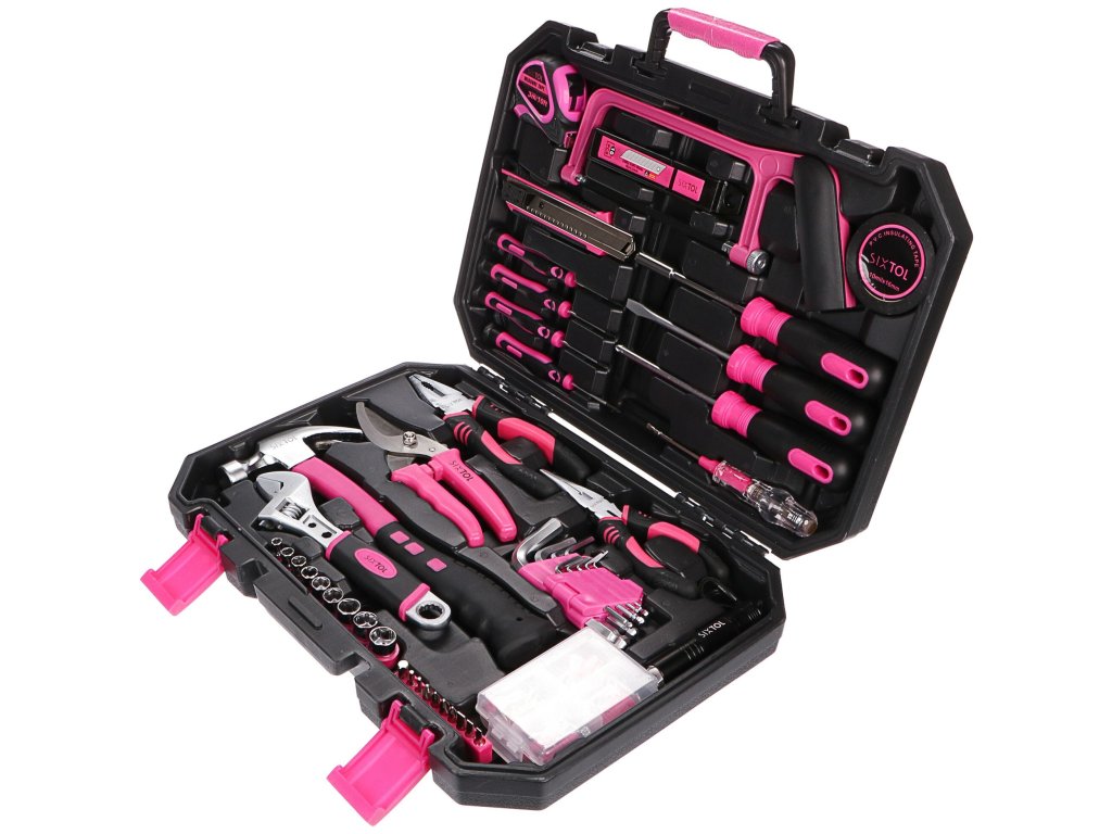 Velká růžová sada nářadí SIXTOL HOME PINK 128 je skvělým pomocníkem v domácnosti i na zahradě. Sada SIXTOL HOME PINK 128 obsahuje širokou škálu kvalitního nářadí se kterým jednoduše a rychle cokoliv opravíte. Sada nářadí SIXTOL HOME PINK 128 se skládá z nářadí jako jsou kleště, imbusové klíče, kladivo, šroubováky, zahradnické nůžky, nástrčné hlavice, svítilna a další. Součástí je i množství užitečného spojovacího materiálu. Nářadí je uloženo ve skladném praktickém černo-růžovém kufříku.Hlavní výhody: