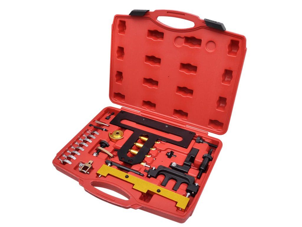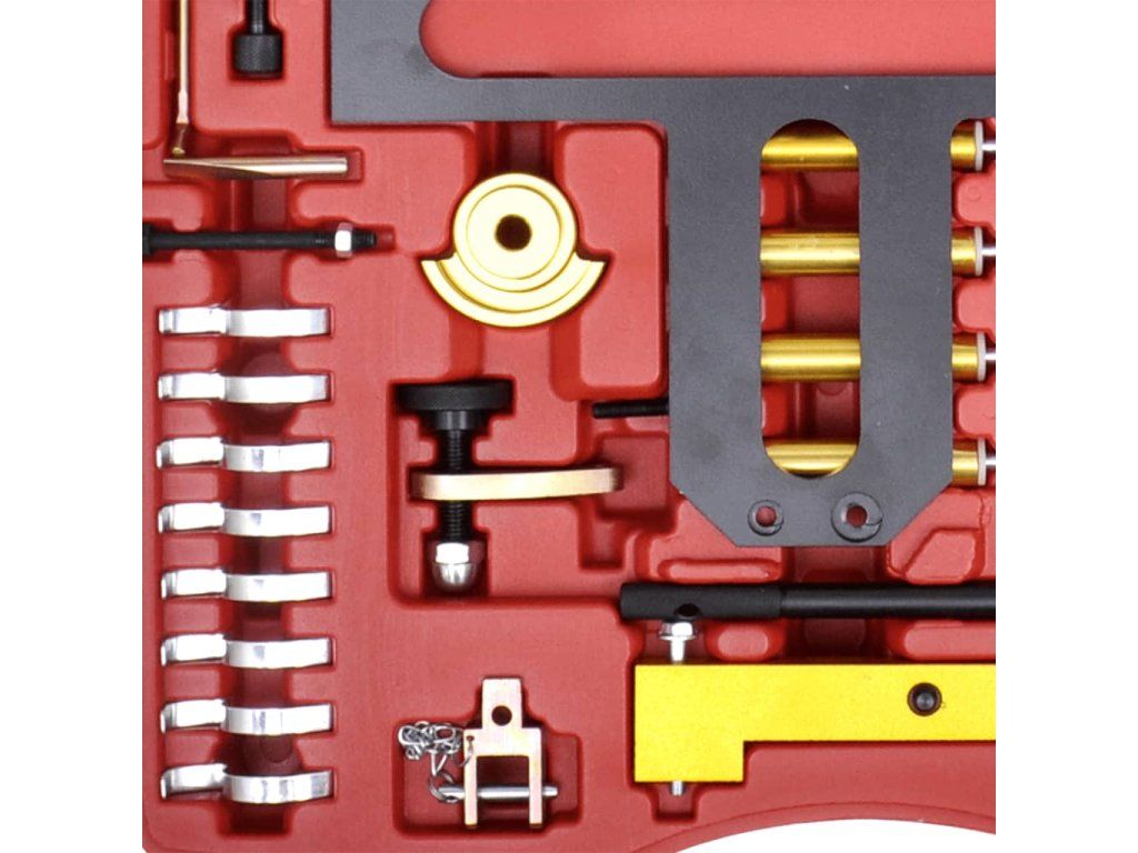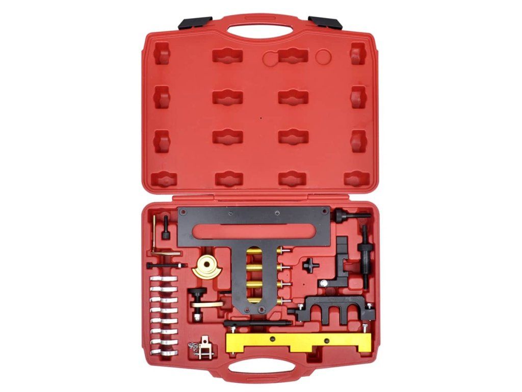 Táto sada náradia na aretáciu benzínových motorov umožňuje montáž a demontáž vačkového hriadeľa a nastavovacích jednotiek, testovanie a nastavenie časovania rozvodu vačkového hriadeľa a zaistenie vačkovéh/kľukového hriadeľa. Predstavuje neoceniteľného pomocníka v profesionálnych aj domácich dielňach.