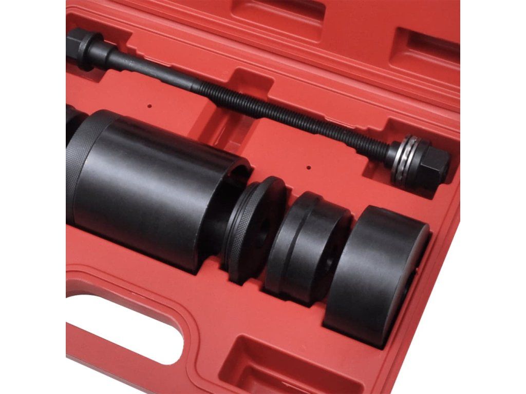 Táto súhrnná sada nástrojov bude ideálna pre montáž a demontáž objímky nápravnice v istých modeloch Mercedes Benz. Jemné závitové a tlakové ložisko umožňuje, aby bola objímka presne na mieste a bez starostí, vďaka čoma sa ovláda skutočne bezpečne. Je ideálna na výmenu objímky nápravnice pokým je stále súčasťou vozidla a bez toho, aby musela byť odmontovaná úplná zadná náprava.