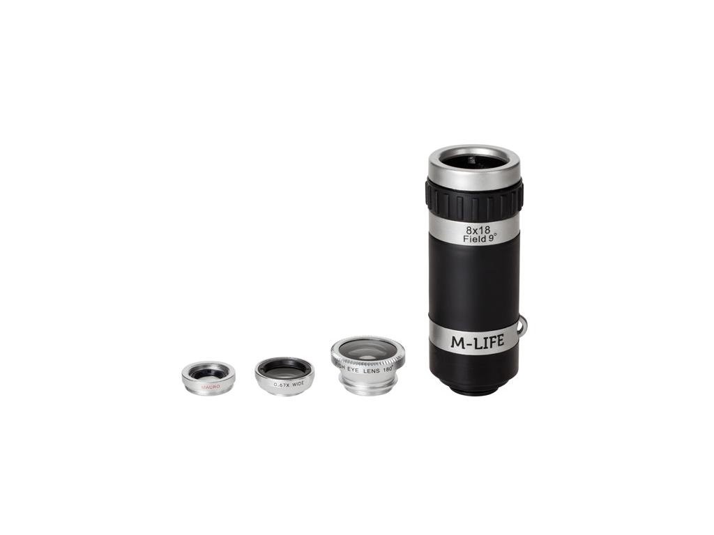 Sada objektívov Fish Eye+Wide Angle+Macro+ Mobile Phone Telescope Lens pre smartfóny a tablety 4w1 M-LifeObjektív Fisheye: