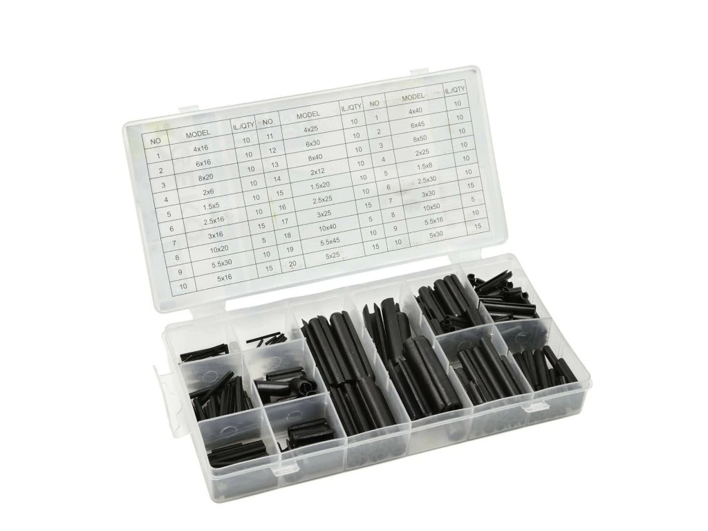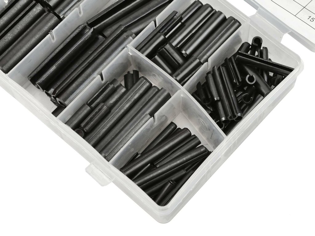 Sada 30-ti druhů, 315 kusů pružných spojovacích kolíkůTechnické parametry: