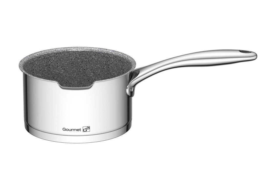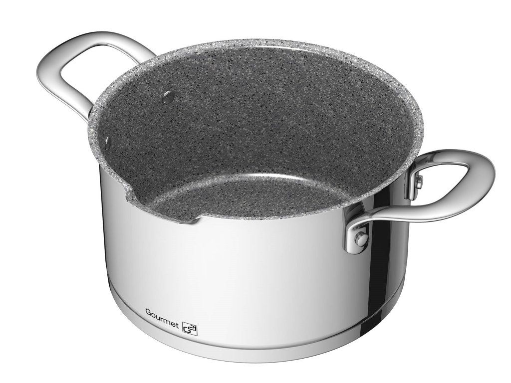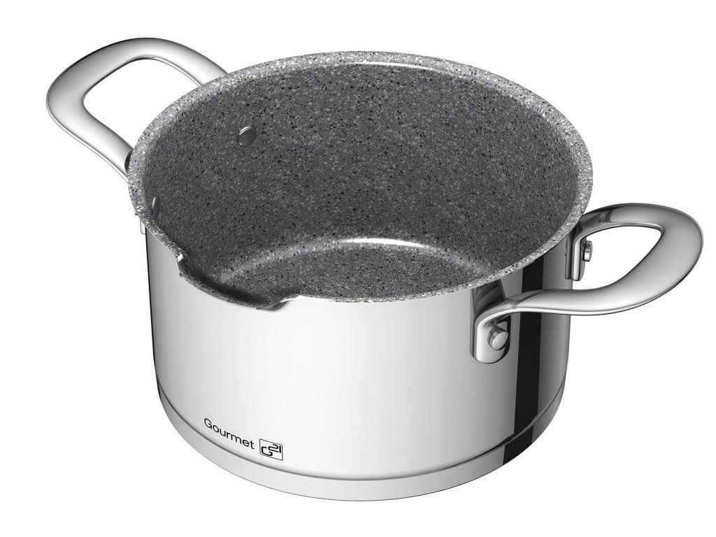 Oceľ Stainless Steel 304, inak tiež chróm-niklová oceľ 18/10 CrNi je preverený a najčastejšie používaný materiál na gastro riade. Potravinárska oceľ 18/10 CrNi obsahuje 18 % chrómu a 10 % niklu. Pre potravinárstvo je vhodná predovšetkým vďaka svojej vysokej odolnosti voči poškodeniu i korózii. Túto odolnosť sme ešte podporili špeciálnym leštením povrchu zvonku a už spomínanouú greblonovou vrstvou zvnútra nádob.